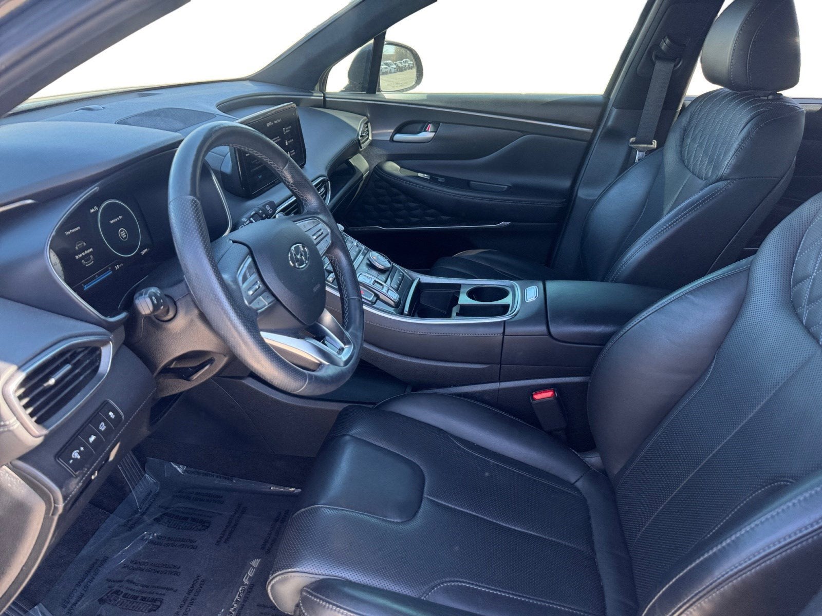 CALL RED MCCOMBS HYUNDAI NORTHWEST AT PH 210-256-5249 #1 Certified Dealer in San Antonio #1 Hyundai Volume Dealer in San Antonio CARFAX One-Owner. Portofino Gray 2023 Hyundai Santa Fe Calligraphy AWD Shiftronic 2.5L I4 *ALUMINUM ALLOY WHEELS*, *APPLE CARPLAY/ANDROID AUTO*, *BACKUP CAMERA*, Americas Best Warranty 10yr/100k miles, Hyundai Roadside Assistance 5yr/Unlimited miles, 12 Speakers, 4-Wheel Disc Brakes, ABS brakes, Air Conditioning, Alloy wheels, AM/FM radio: SiriusXM, Apple CarPlay & Android Auto, Auto High-beam Headlights, Auto-dimming Rear-View mirror, Automatic temperature control, Axle Ratio: 3.316, Brake assist, Bumpers: body-color, Driver door bin, Driver vanity mirror, Dual front impact airbags, Dual front side impact airbags, Electronic Stability Control, Emergency communication system, Exterior Parking Camera Rear, Four wheel independent suspension, Front anti-roll bar, Front Bucket Seats, Front Center Armrest, Front dual zone A/C, Front reading lights, Fully automatic headlights, Garage door transmitter: HomeLink, harman/kardon® Speakers, Heads-Up Display, Heated & Ventilated Front Bucket Seats, Heated door mirrors, Heated front seats, Heated rear seats, Heated steering wheel, Illuminated entry, Leather steering wheel, Low tire pressure warning, Memory seat, Navigation System, Occupant sensing airbag, Option Group 01, Outside temperature display, Overhead airbag, Overhead console, Panic alarm, Passenger door bin, Passenger vanity mirror, Power door mirrors, Power driver seat, Power Liftgate, Power moonroof, Power passenger seat, Power steering, Power windows, Quilted Premium Nappa Leather Seat Trim, Radio: AM/FM Harman Kardon Display Audio, Rain sensing wipers, Rear anti-roll bar, Rear seat center armrest, Rear window defroster, Rear window wiper, Remote keyless entry, Security system, Speed control, Speed-sensing steering, Split folding rear seat, Spoiler, Steering wheel mounted audio controls, Tachometer, Telescoping steering wheel, Tilt steering wheel, Traction control, Trip computer, Turn signal indicator mirrors, Variably intermittent wipers, Ventilated front seats, Wheels: 20" x 8.0J Alloy.