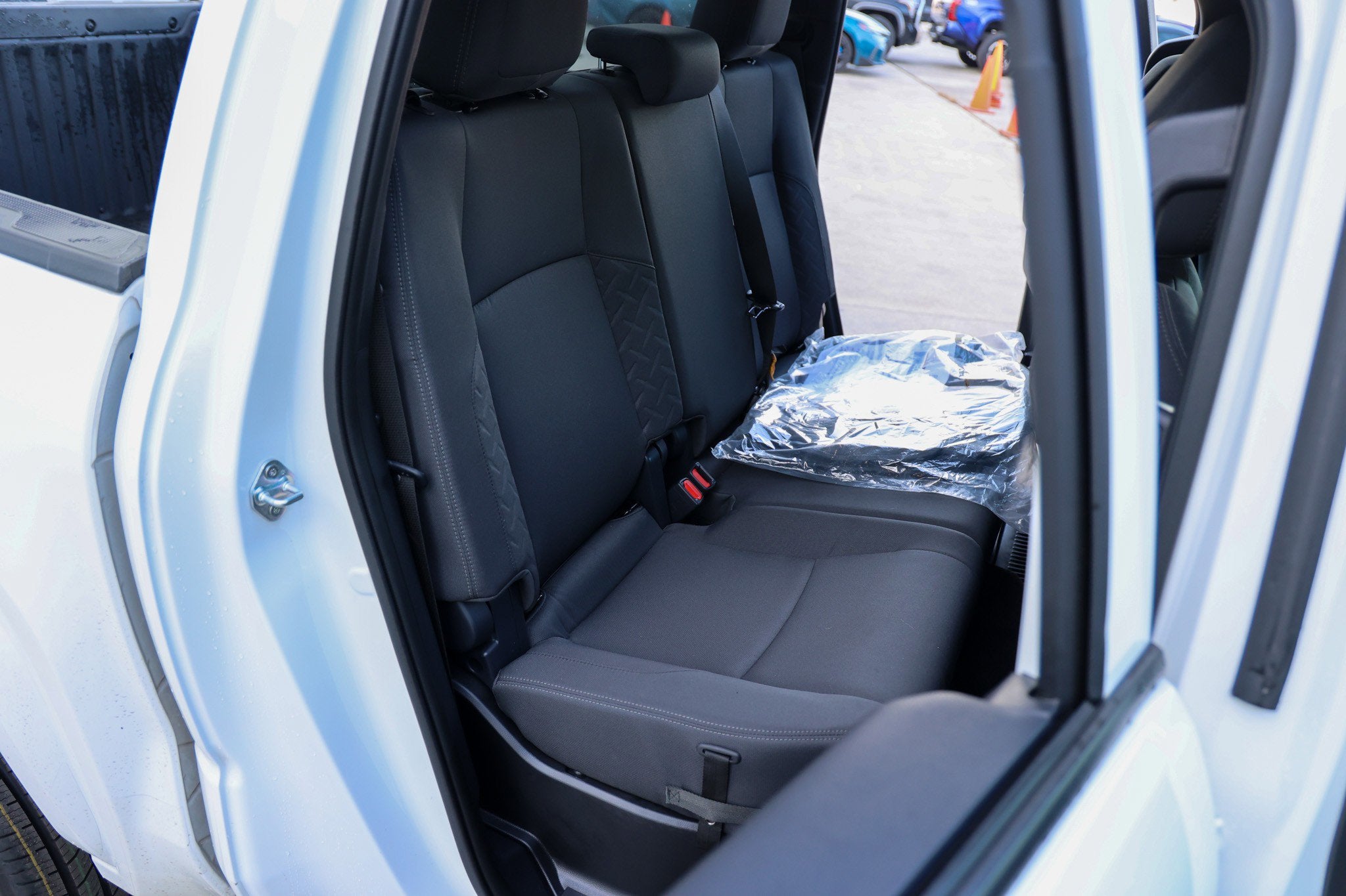 - Rear seatback upholstery Plastic rear seatback upholstery