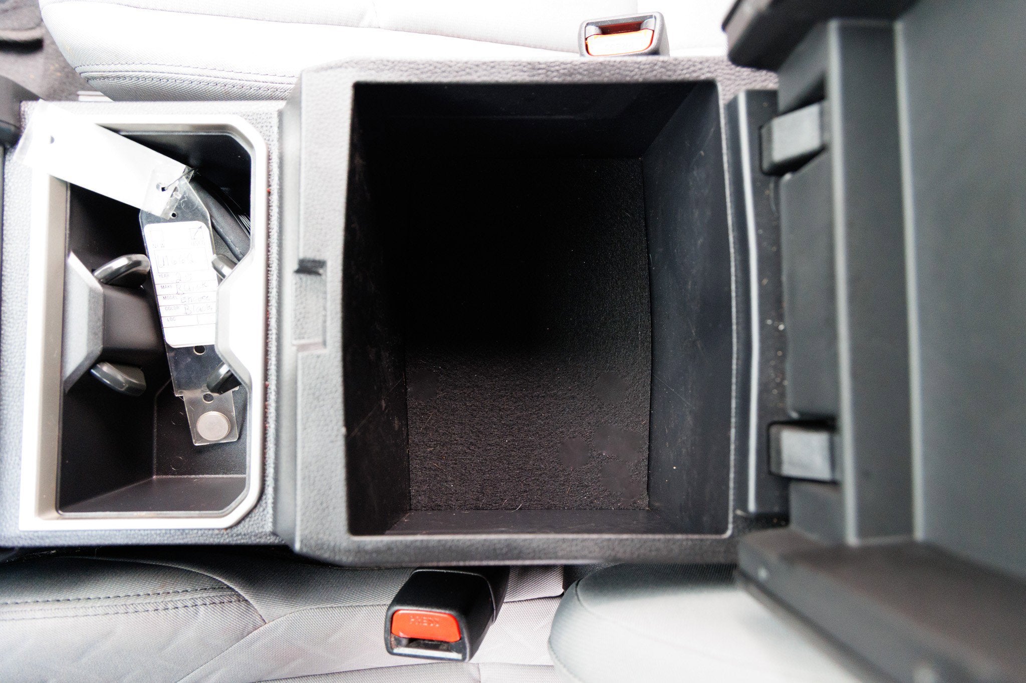 • Floor console storage Covered floor console storage