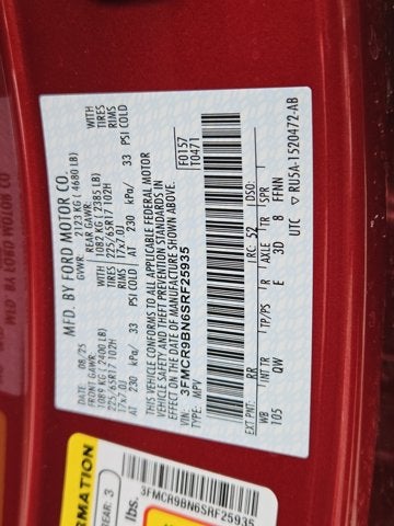 Voice Activated Automatic Air Conditioning, Trip Computer, Transmission: 8-Speed Automatic, Transmission w/Driver Selectable Mode, Tires: 225/65R17 102H All Season BSW, Tire Specific Low Tire Pressure Warning, Tire mobility kit, Tailgate/Rear Door Lock Included w/Power Door Locks, SYNC 4 w/Enhanced Voice Recognition -inc: 13.2" LCD capacitive touchscreen in center stack w/swipe capability, cloud connected, 911 Assist, wireless Apple CarPlay and Android Auto compatibility, digital owners manual and conversational voice command recognition, Strut Front Suspension w/Coil Springs.