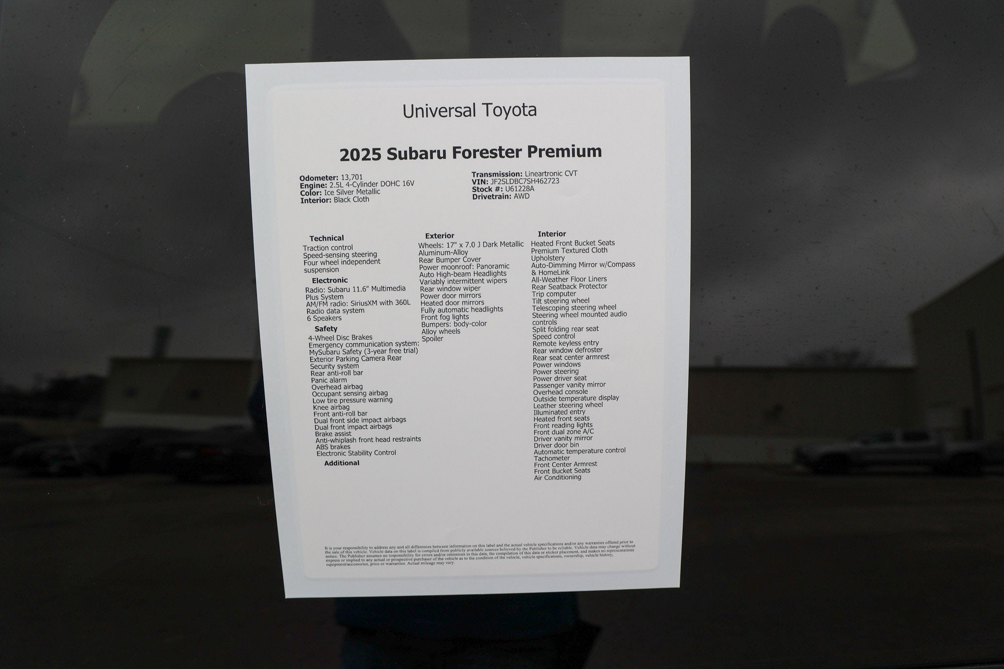 Passionate enthusiasts wanted for this stunning and seductive 2025 Subaru Forester Premium. Savor quick shifting from the Variable transmission paired with this impressive Regular Unleaded H-4 2.5 L/152 engine. Delivering an amazing amount of torque, this vehicle needs a serious driver! It's loaded with the following options: STANDARD MODEL, ICE SILVER METALLIC, Wireless Phone Connectivity, Voice Activated Dual Zone Front Automatic Air Conditioning, Variable Intermittent Wipers w/Heated Wiper Park, Valet Function, Urethane Gear Shifter Material, Trip Computer, Transmission w/Driver Selectable Mode and Oil Cooler, and Towing Equipment -inc: Trailer Sway Control. Drive for days in this lively and playful Subaru Forester. Visit Universal Toyota located at 12102 IH35 North, San Antonio, TX 78233 for a hassle-free deal!